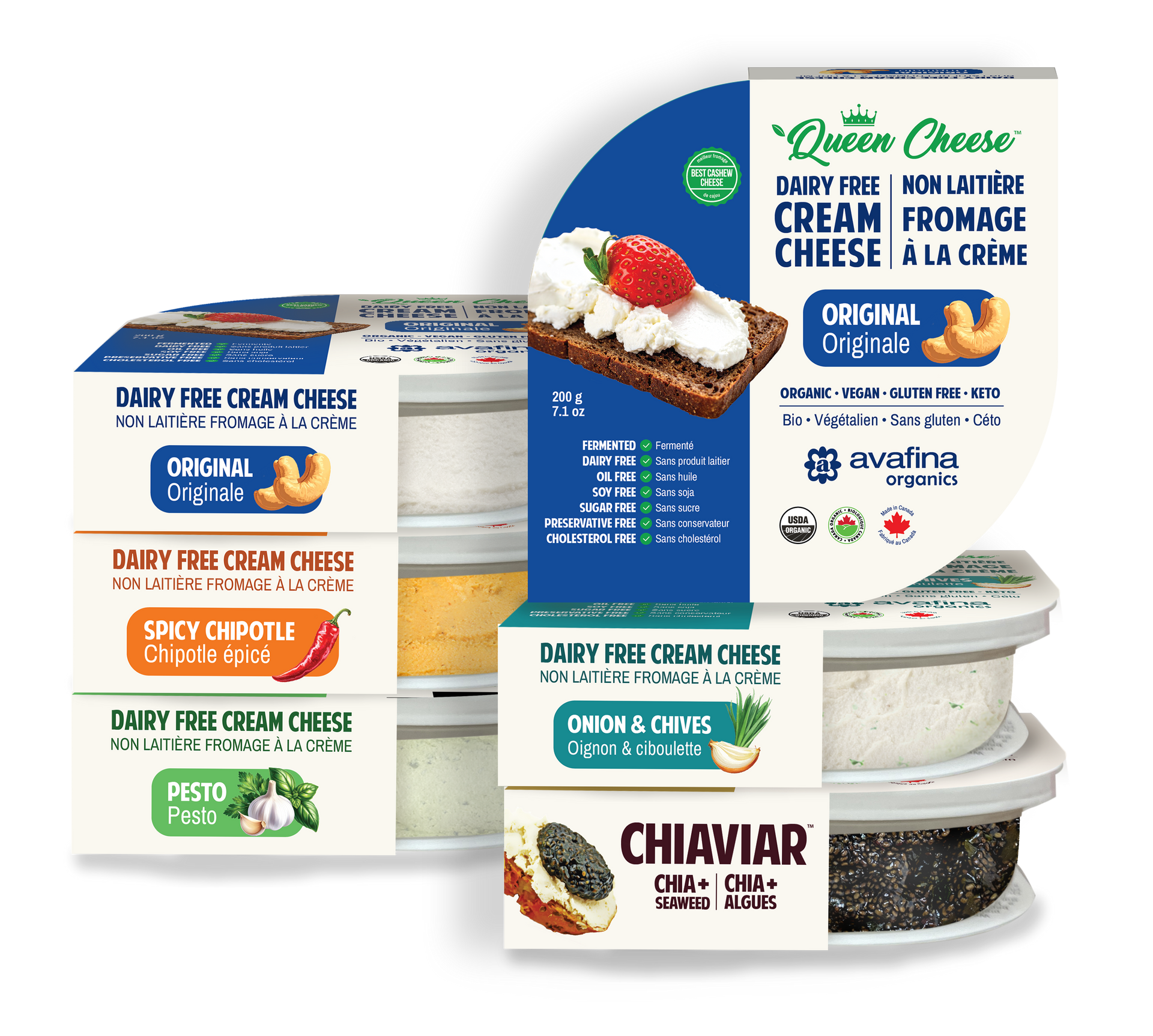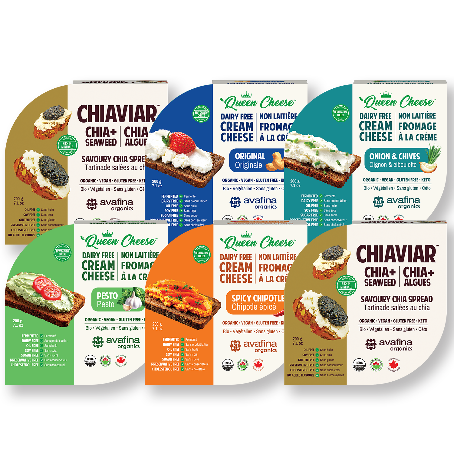 Pick any 6 of Avafina Organics' Original Plant Based Spreads at a special price! Try out all our delicious varieties of Queen Cheese™ and Chiaviar™! Choose your 6 flavours via drop down, add to bag, and choose the delivery as "Pickup". Once we receive your order, we will be in touch shortly for pick up instructions.